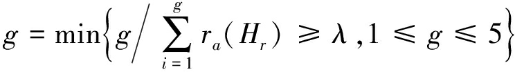 矿用变压器的5个评估等级构成一个有序分割类,H=(H1,H2,H3,H4,H5),ra(Hr)表示第a台变压器对状态评估等级Hr的基本概率赋值。由于本文中变压器绝缘状态评估等级Hr越小,表示其运行状态越好,所以,定义H1>H2>H3>H4>H5,则第a台变压器的评估等级g为