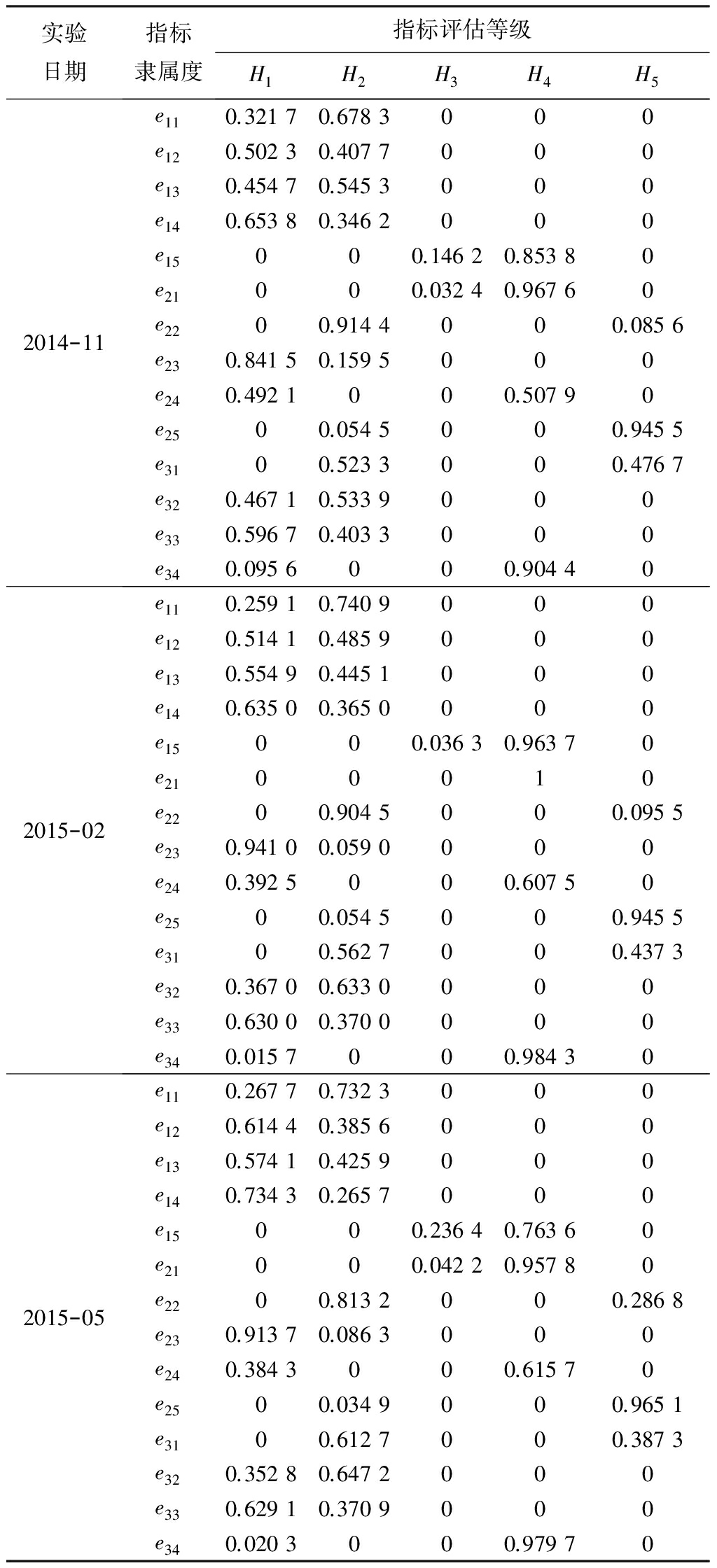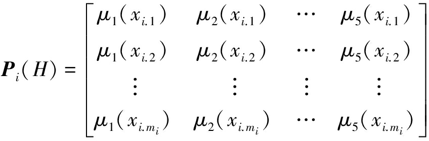 式中Pi(H)为因素fi所属评估等级的隶属度,可用式(15)求得。