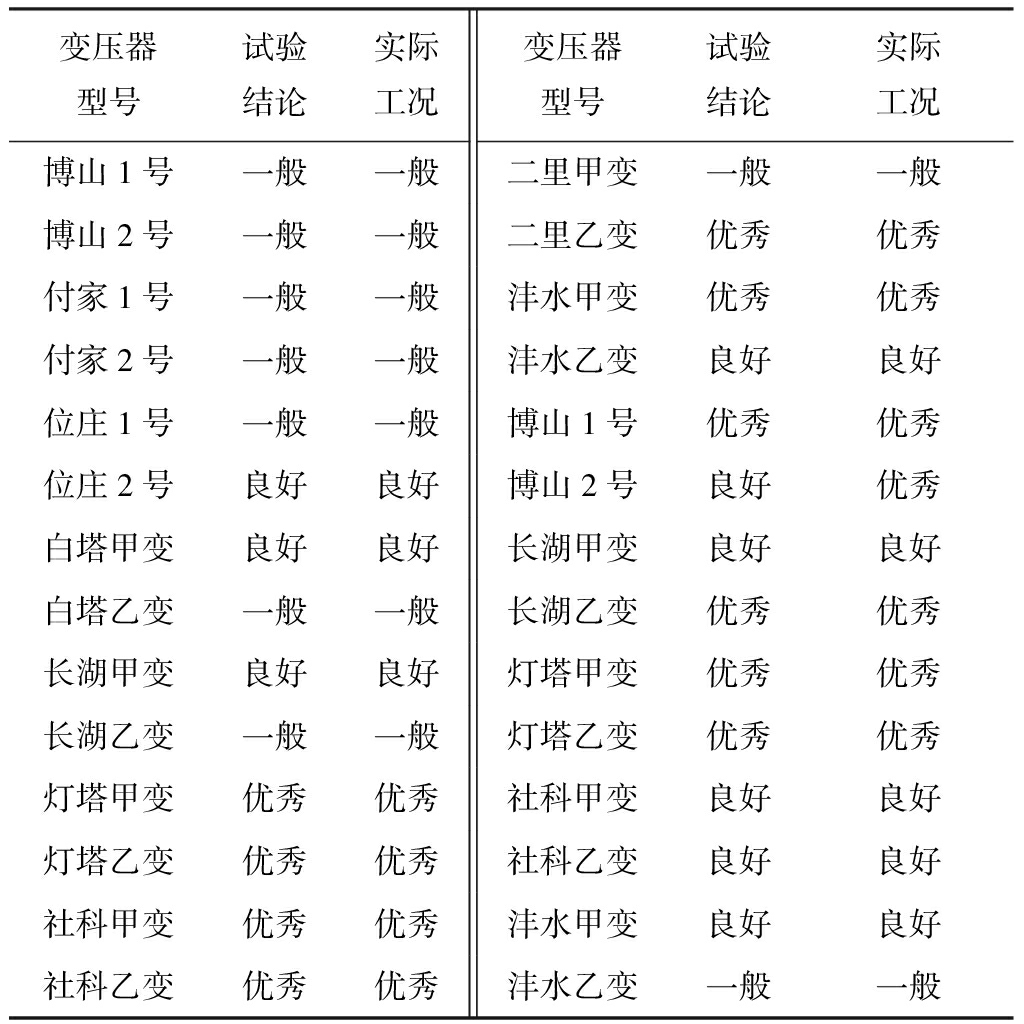 本文又收集了28台变压器的试验数据,用所提方法做了进一步的验证。试验评估结果见表4。