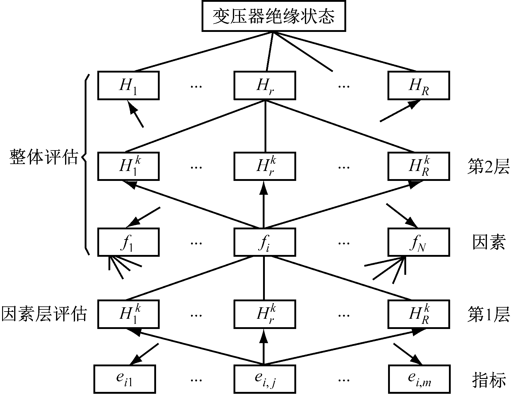 用图2所示的双层评估模型对图1所示的矿用变压器绝缘状态评估系统进行解析。