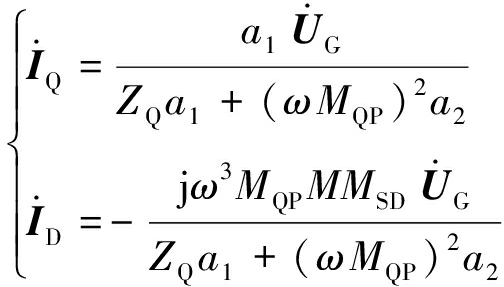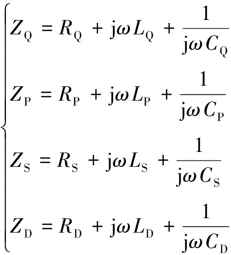 设四线圈结构谐振耦合单元谐振角频率与高频交流电源的角频率相等,则驱动谐振回路的自阻抗ZQ、发射谐振回路的自阻抗ZP、接收谐振回路的自阻抗ZS和负载谐振回路的自阻抗ZD分别为