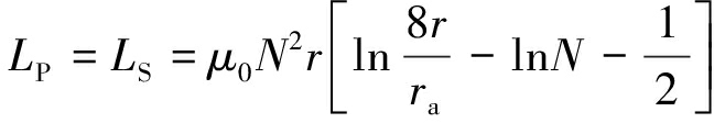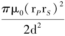 式中:μ0为真空磁导率;N为线圈匝数;r为线圈半径;ra为线圈导线半径;ω为高频交流电源的角频率;σ为线圈导线电导率;rP,rS分别为发射线圈、接收线圈半径;d为发射线圈、接收线圈之间的轴向距离。