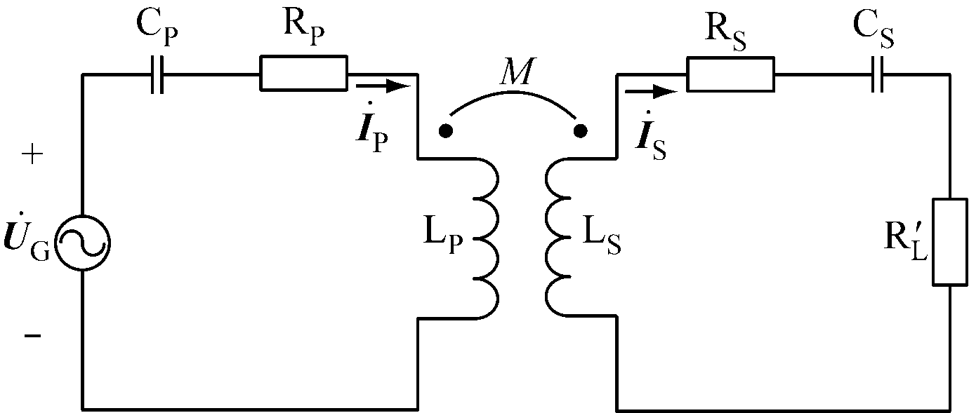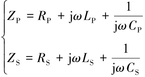 两线圈结构谐振耦合单元由发射谐振回路和接收谐振回路组成,发射谐振回路和接收谐振回路均采用线圈和谐振补偿电容串联的方式连接[12-13],如图3所示。LP,LS分别为发射线圈和接收线圈的自感;RP,RS分别为发射线圈和接收线圈的寄生电阻;CP,CS分别为发射线圈和接收线圈的谐振补偿电容;