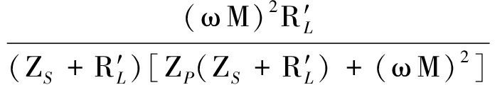 设两线圈结构谐振耦合单元谐振角频率与高频交流电源的角频率相等,则发射谐振回路的自阻抗ZP、接收谐振回路的自阻抗ZS分别为