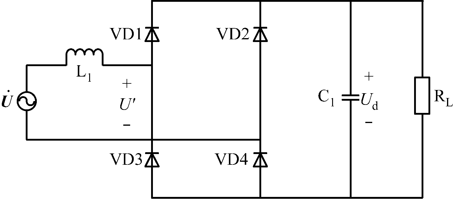 式中:Ud为滤波电容两端电压;U′为输入电压;δ为二极管VD1和VD4导通时刻与U′过零点相距的角度。