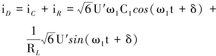 根据不控整流电路的工作原理[11],得到电容电流iC、负载电流iR和流经二极管的直流输出电流iD: