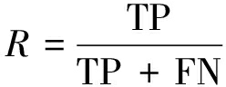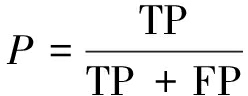 式中:TP为将正类分类为正类的个数;FP为将负类分类为正类的个数;FN为将正类分类为负类的个数。