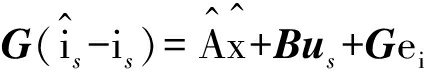 式中:G为全阶状态观测器的反馈增益矩阵,