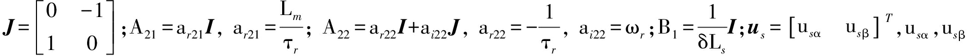 当以定子电流和转子磁链为状态变量时,两相静止坐标系下三相异步电动机的状态方程[14-15]为