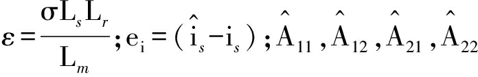 式中:a=-g1+Rs/σLs+Rr/σLr;b=-g2-ωr;m=Rr/Lr(-g1+Rs/σLs-g3/ε)+ωr(-g2-g4/ε);n=Rr/Lr(-g2-g4/ε)-ωr(-g1+Rs/σLs-g3/ε)。