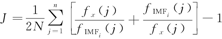 式中:N为采样长度;fx为样本信号的幅值谱或包络谱;fIMFi为分解后的第i阶IMF分量的幅值谱或包络谱。