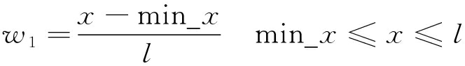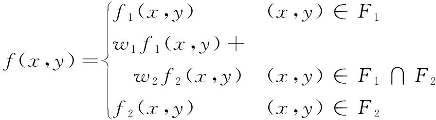 式中:f(x,y)为融合图像的像素值;f1(x,y),f2(x,y)分别为左右待拼接图像像素值;F1,F2分别为左右待拼接图像;min_x为重叠区域横坐标起始位置;l为重叠区域宽度。