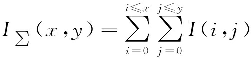 (1) 构建积分图像。设原始图像为I(x,y),(x,y)为图像上像素点坐标,则其积分图像为