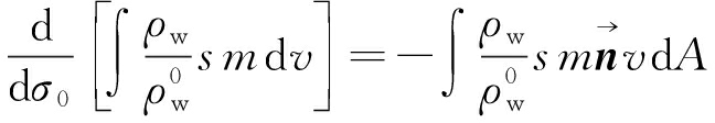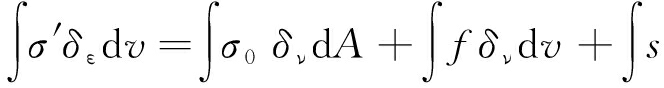 式中:σ′为有效应力;δε为虚应变;v为渗流速度;σ0为单位面积的有效表面应力;δν为虚功速度场;A为有效表面积;f为单位体积的体积力;s为固体物质饱和度;m为固体物质孔隙率;ρw为流体密度;g为重力加速度。