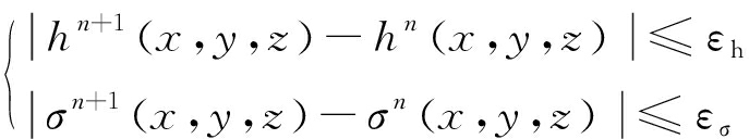 式中:hn(x,y,z)为(x,y,z)处第n次迭代的水头分布;σn(x,y,z)为(x,y,z)处第n次迭代的应力分布;εh,εσ分别为水头和应力求解精度要求。
