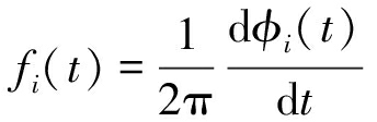 对相位函数求导,得到瞬时角频率ωi(t)和瞬时频率fi(t):