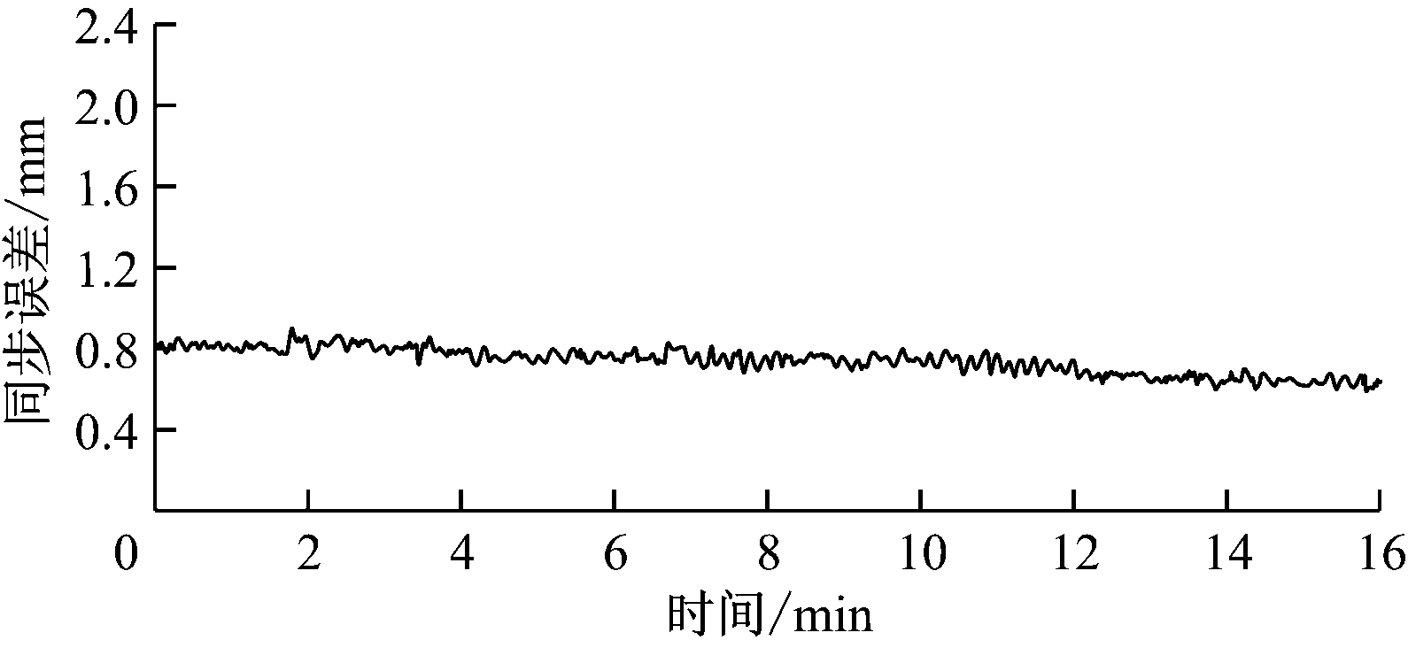 四缸同步最大误差曲线如图4所示。调高行程为4 500 mm,活动平台调高过程中四缸最大同步误差为0.91 mm,四缸最小同步误差为0.63 mm,调节过程活动平台运行平稳,误差小于2 mm,符合设计要求。