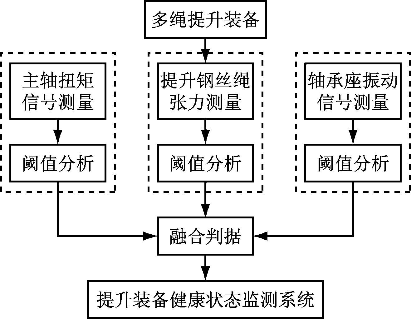 关键词:矿井提升装备; 健康状态监测; 信号融合; 主轴扭矩; 轴承座振动; 钢丝绳张力