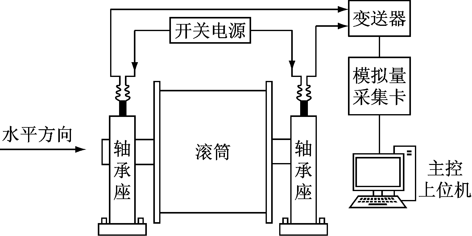 根据提升系统的结构,提升载荷产生的激励通过提升钢丝绳传递到滚筒并与之产生耦合,而后通过主轴和主轴承等传递到主轴装置的2个轴承座。不同的提升载荷对轴承座处振动的影响不一样,因而通过监测振动信号可以实现对提升载荷异常状态的识别。