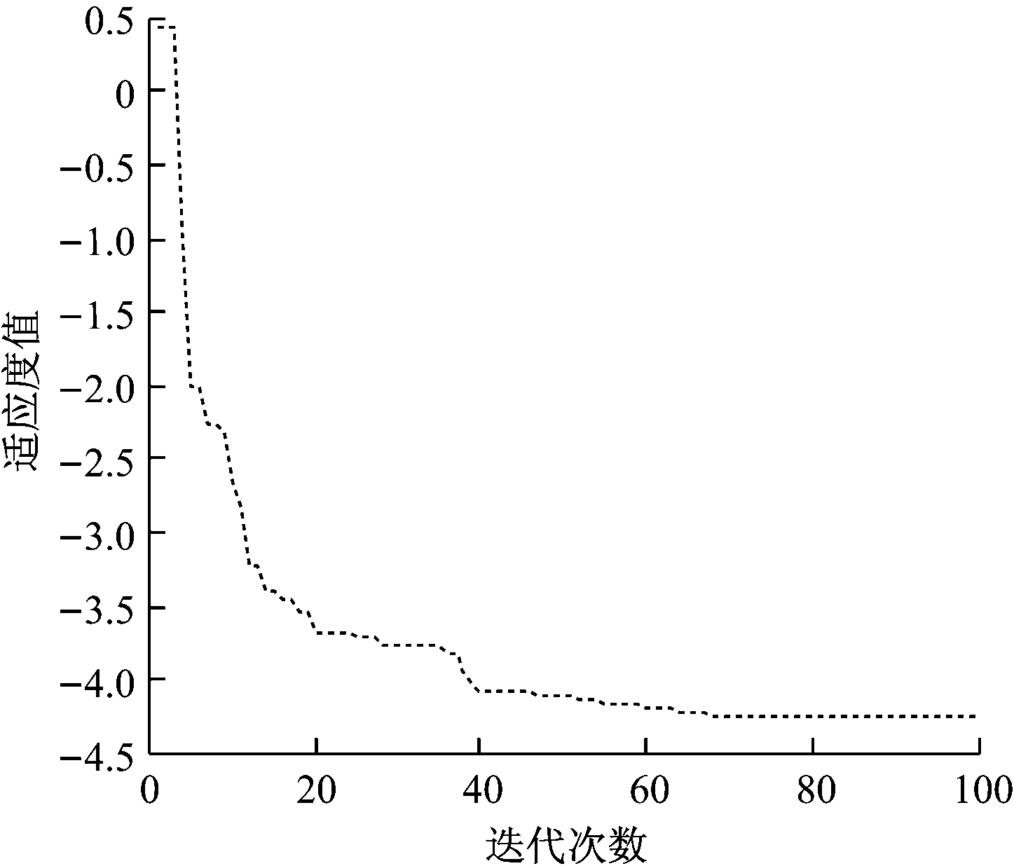 本文选取最大迭代次数为100次,粒子数为45个,最优适应度值为0.013 9。适应度曲线如图1所示。