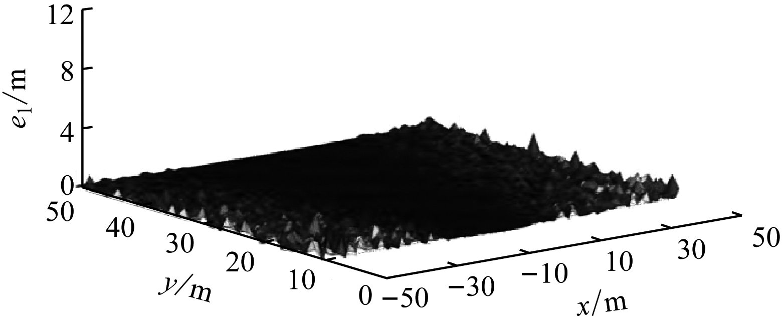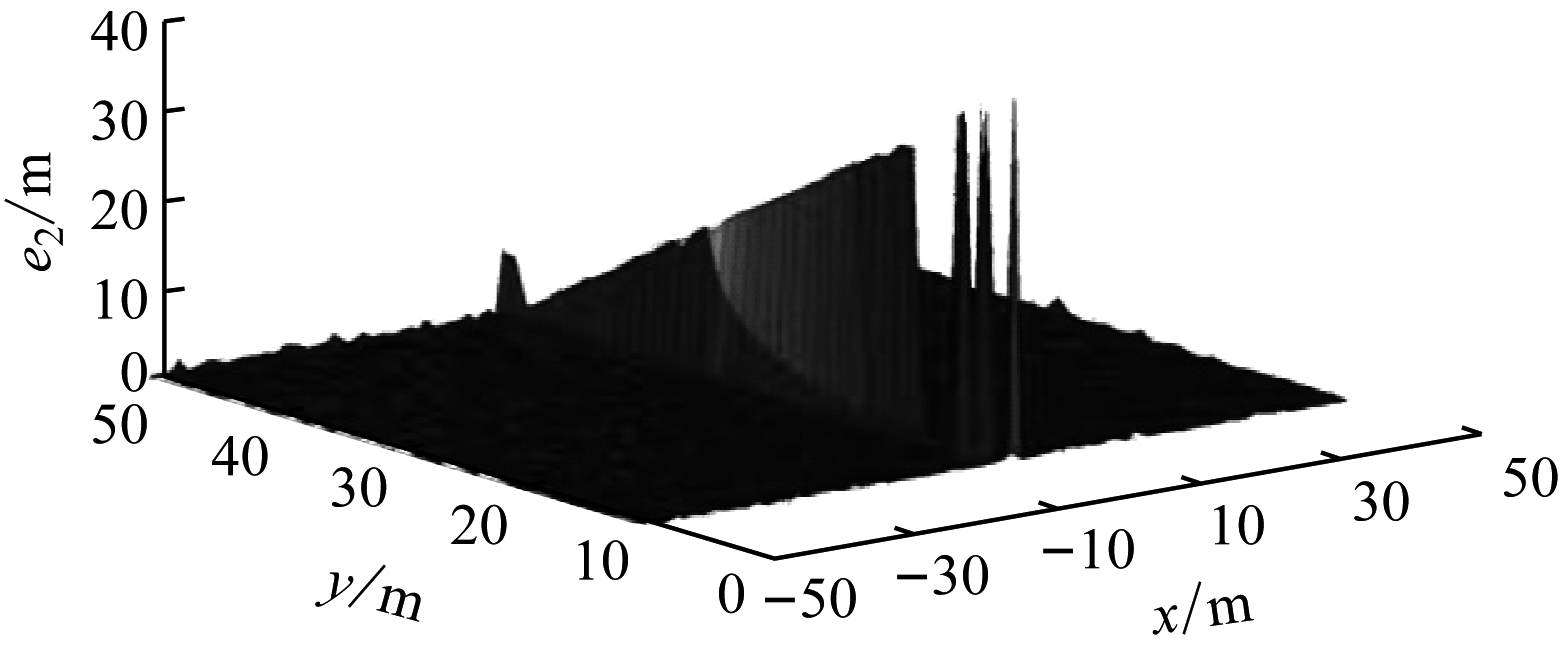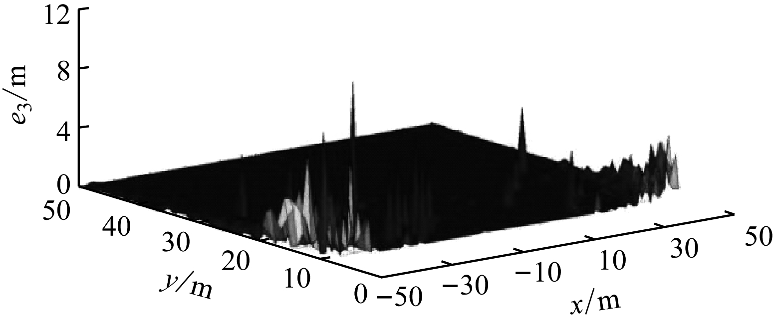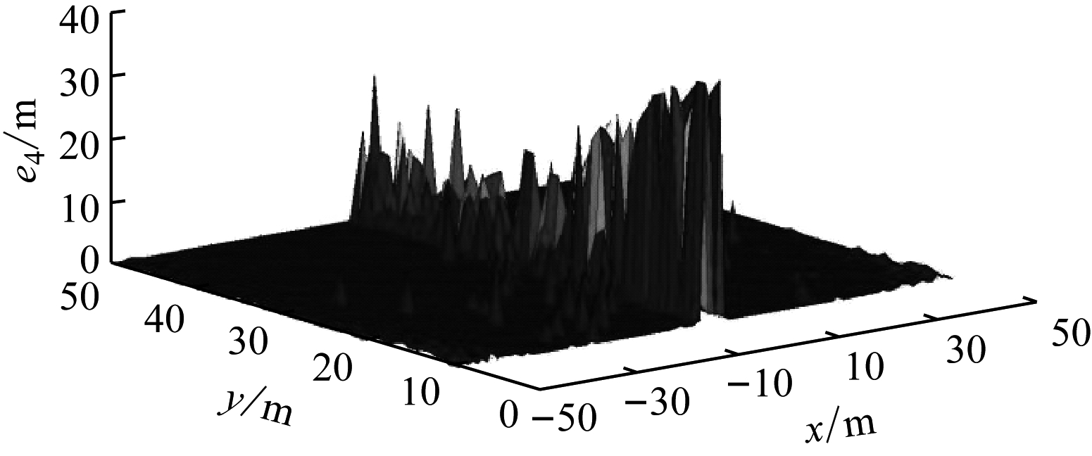 在图3、图4中的绝大部分区域,改进GA算法的误差曲线要比GA算法光滑,误差更小,定位速度更快。但是一旦出现误差,误差值会比较大。