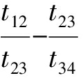 式中:v为波速;t12=t1-t2;t23=t2-t3;t34=t3-t4。