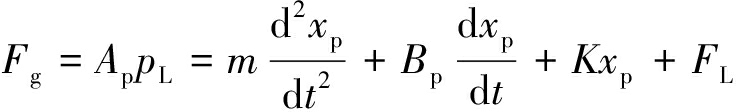式中:Fg为液压缸的输出力;m为活塞及负载总质量;Bp为活塞及负载的黏性阻尼系数;K为负载弹簧刚度;FL为拉紧小车的摩擦力。