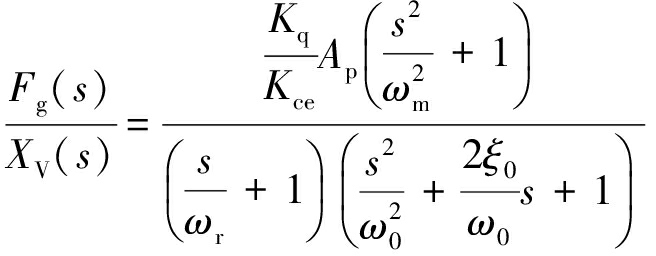 式中:Kce为总流量压力系数;ωm为负载固有频率;ωr为惯性环节的转折频率;ω0为综合固有频率;ξ0为综合阻尼比[9]。
