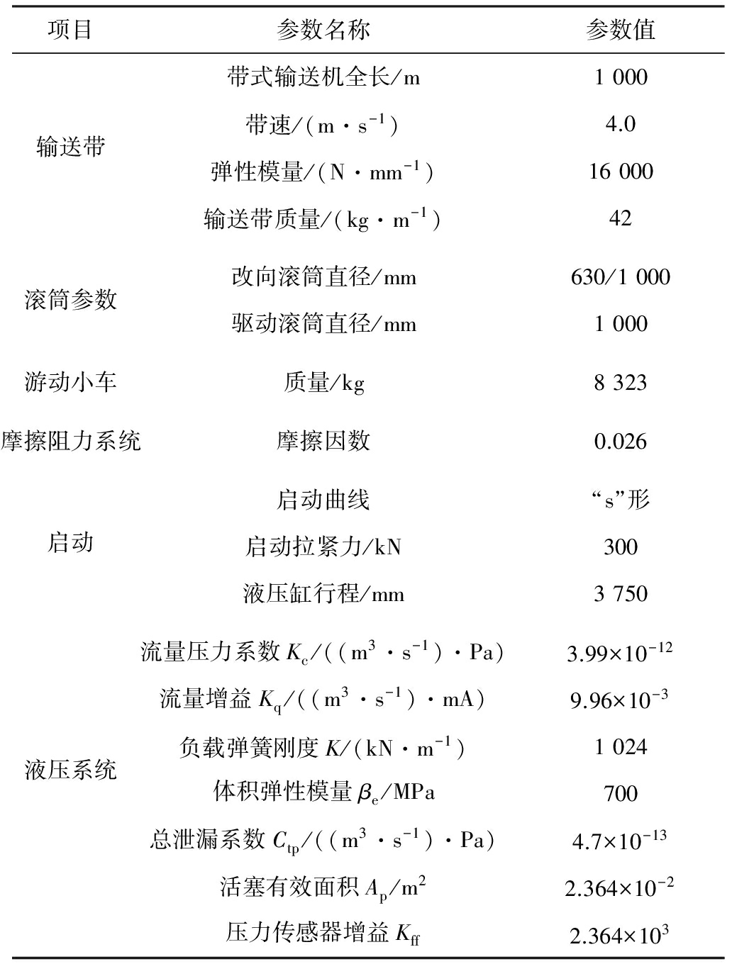 带式输送机逐渐向大运量、长距离和高带速方向发展,输送带动态特性变得越来越显著,主要表现为输送带尾部的速度、加速度及张力的变化范围增大。若不对其拉紧装置进行有效控制,当张力下降到一定值时,会造成输送带打滑,甚至淤带;张力过大或有较大变化时,会造成输送带断带。因此,对拉紧装置的张力控制系统进行实时有效的控制,对增强带式输送机的安全性、延长使用寿命具有重要意义。