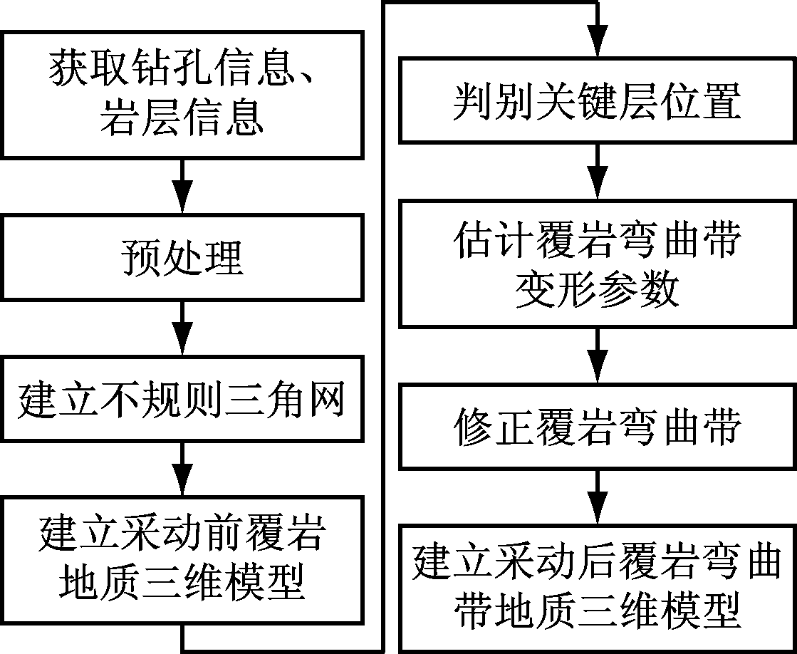 图1 基于GTP模型的覆岩弯曲带三维建模流程