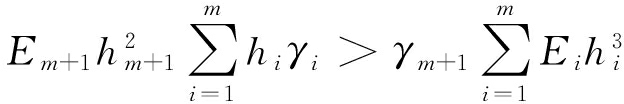 岩层是否为硬岩层是区分关键层的前提,首先自底向上确定硬岩层所处位置。从第1层往上,判别第m+1层岩层是否为硬岩层的公式为[9-10]