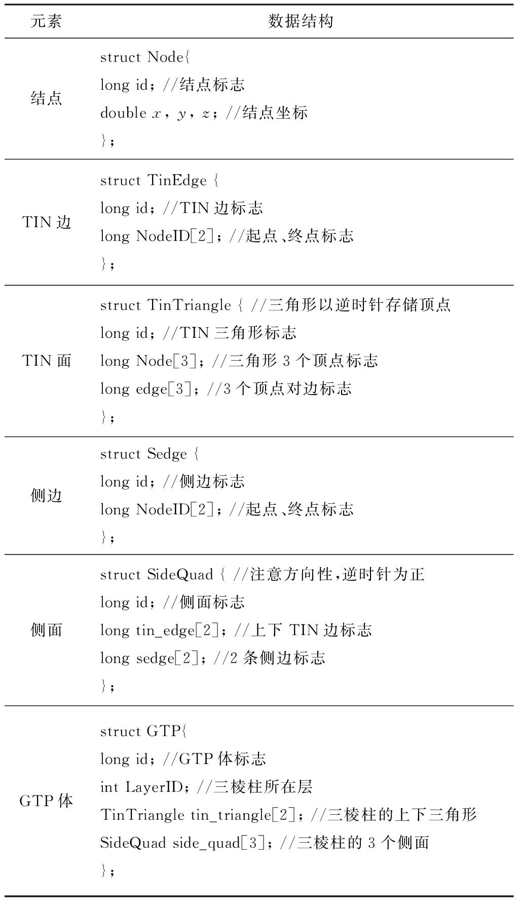 表1 GTP模型数据结构