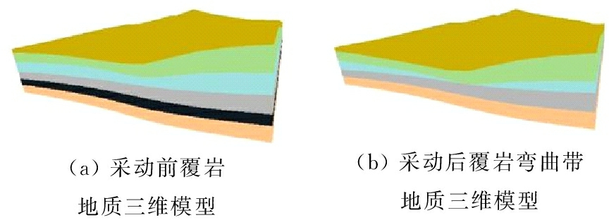 关键词:煤炭开采; 覆岩; 弯曲带; 地质三维模型; 广义三棱柱; 关键层