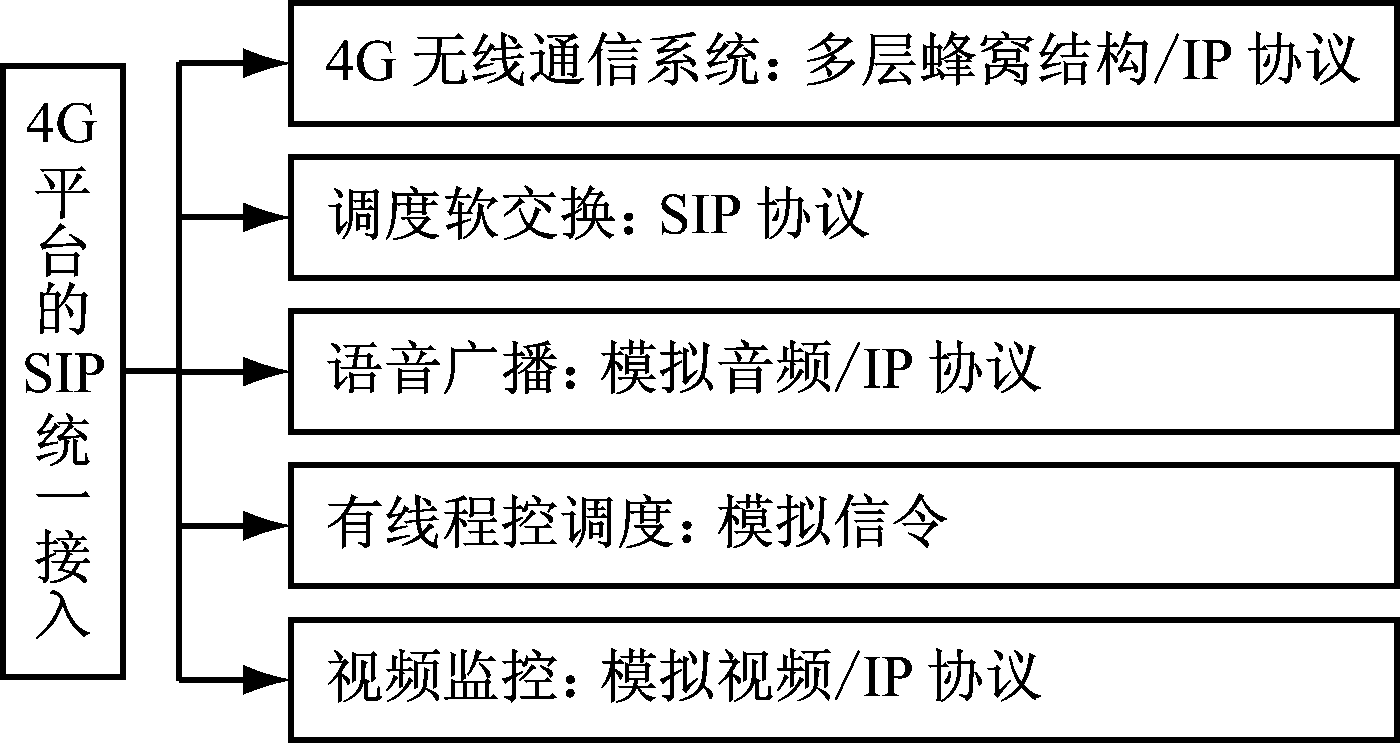 目前煤矿井下4G无线通信、语音广播、IP电话、程控调度、视频监控等子系统采用不同的协议进行数据传输,并采用独立的显示平台。采用LTE技术建立全矿井融合通信系统,可实现井下各子系统的SIP(Session Initiation Protocol,会话初始协议)统一接入,如图2所示,从而实现不同的用户定位、会话建立、会话管理等功能。
