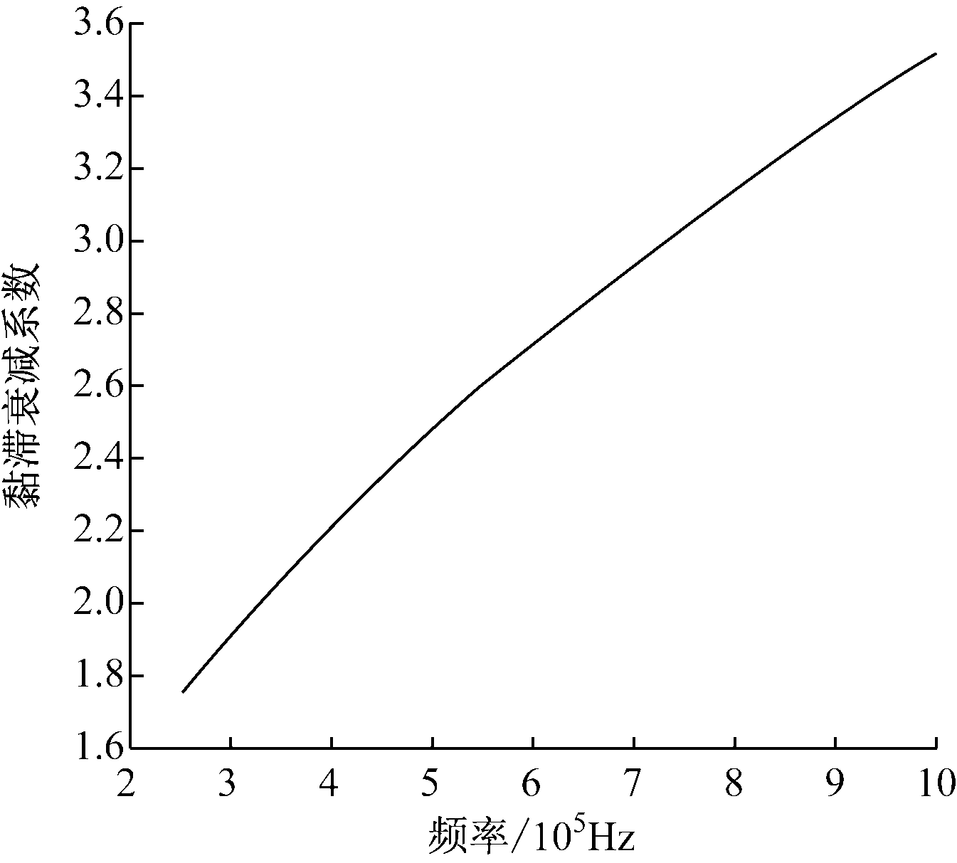 图7 超声波频率与黏滞衰减系数的关系曲线
