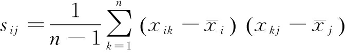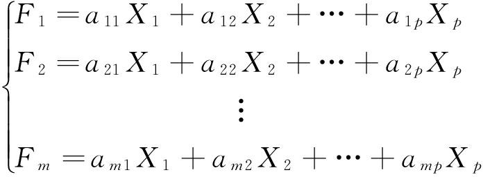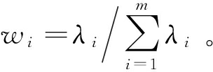 (2) 计算Σ的特征值λi及其相应的正交化单位矩阵ai。Σ的前m个特征值就是前m个原变量的方差,λi对应的单位矩阵ai就是正交变换中原变量的系数,则根据式(5),原变量的第i个指标为Fi。