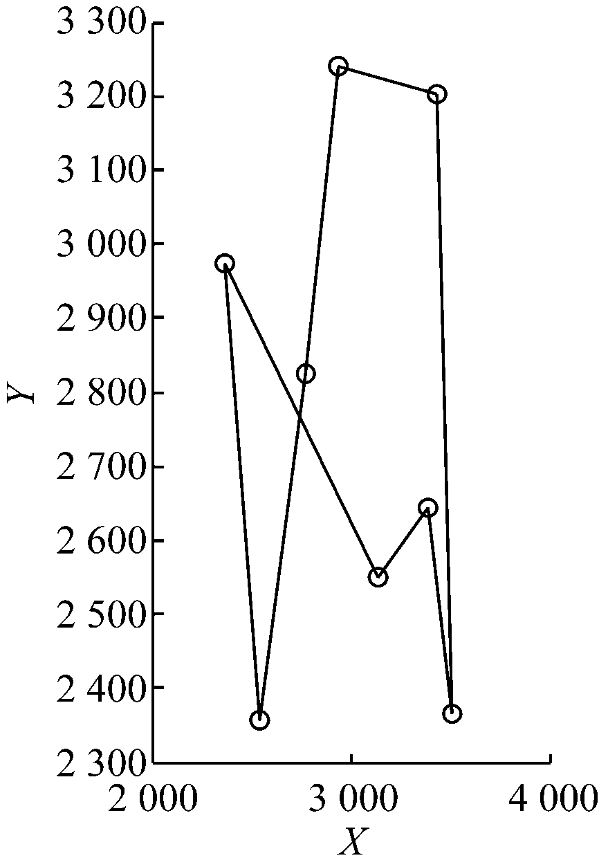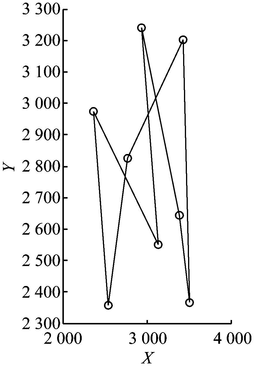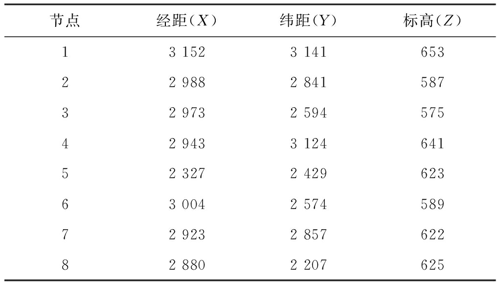 选取西北某矿业公司1号井307工作面巷道数据进行仿真模拟。为了方便描述和简化巷道模型,选取其中8个关键节点之间的巷道进行仿真计算,这8个节点的属性数据见表2。