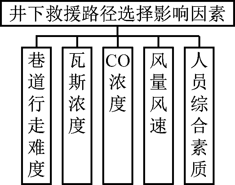 Fig.1 Hierarchical structure model of influencing factors of rescue path selection