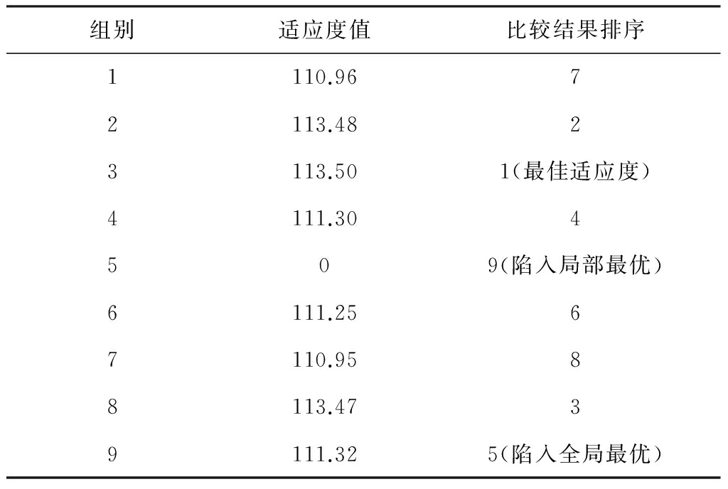 参数设置中,强调行走难易度相对重要性,故Beta取值大于Alpha。信息素挥发系数的值越小,其发现最优解的能力越强,但是其值较小时容易陷入局部最优,较大时容易陷入全局最优。由表7可知,第3组参数得到的适应度值最大。