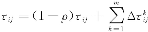 式中:τij为边(i,j)上的信息素;ρ为信息素挥发系数,0<ρ≤1;