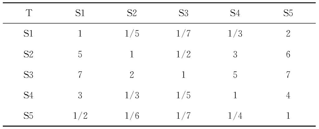 表1 准则层S对目标层T的判断矩阵Table 1 Judgment matrix of guidelines layer S to target layer T