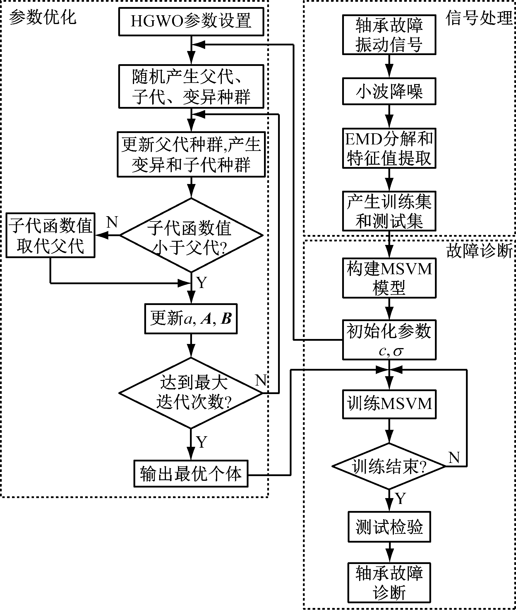 Fig.1 Bearing diagnosis flow based on HGWO-MSVM