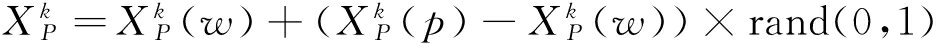 (w)分别为第k个个体第P维的上下界,k=1,2,…,p,p为个体个数;d为解的维数;rand(0,1)表示[0,1]的随机数。