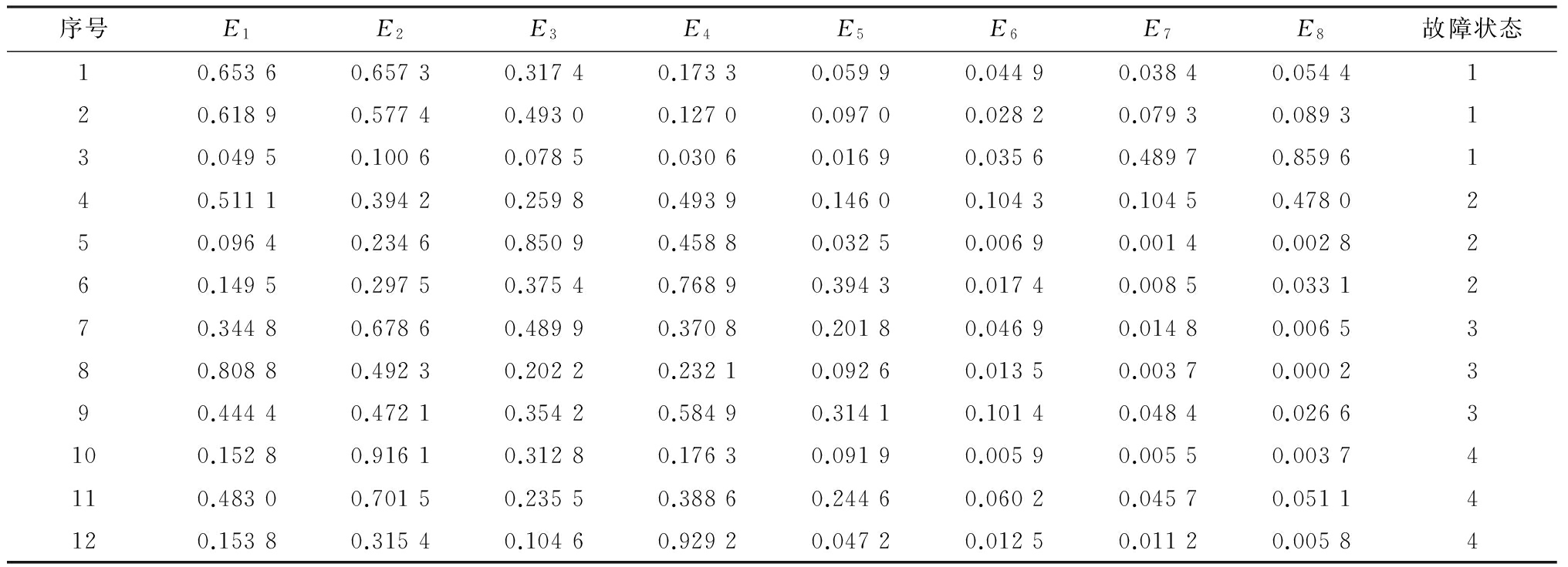 Table 1 Partial test samples of energy characteristic values of each state of bearing