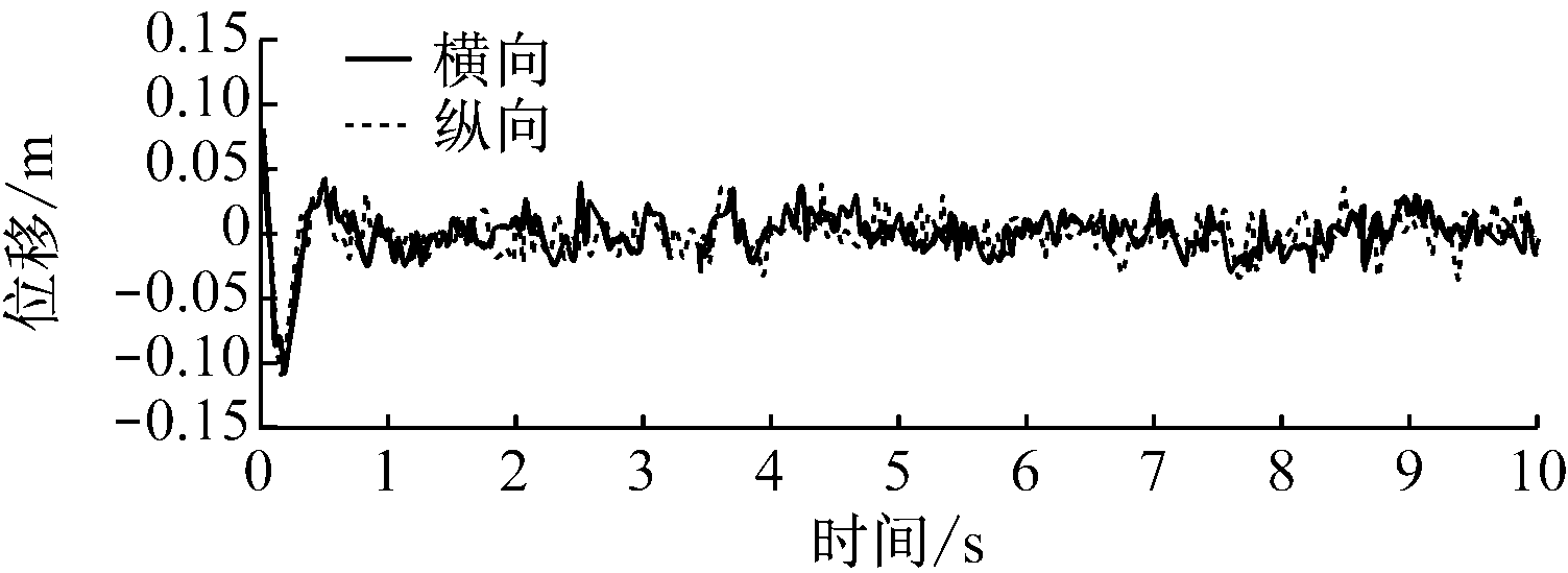掘进机水平截割过程中截割头、悬臂、机体随机振动的横向和纵向位移响应如图6所示,其统计值见表4。