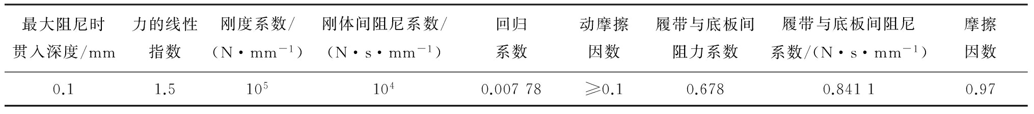 通过MechPro与ADAMS无缝连接,将纵轴式掘进机三维模型映射到ADAMS中,对模型添加载荷及驱动,定义各零部件的材料属性,以及构件间的接触力、摩擦力和阻尼参数等,相关参数见表1。对模型进行验证,确保约束及驱动满足运动要求[8-10],建立纵轴式掘进机多刚体动力学模型,如图3所示。