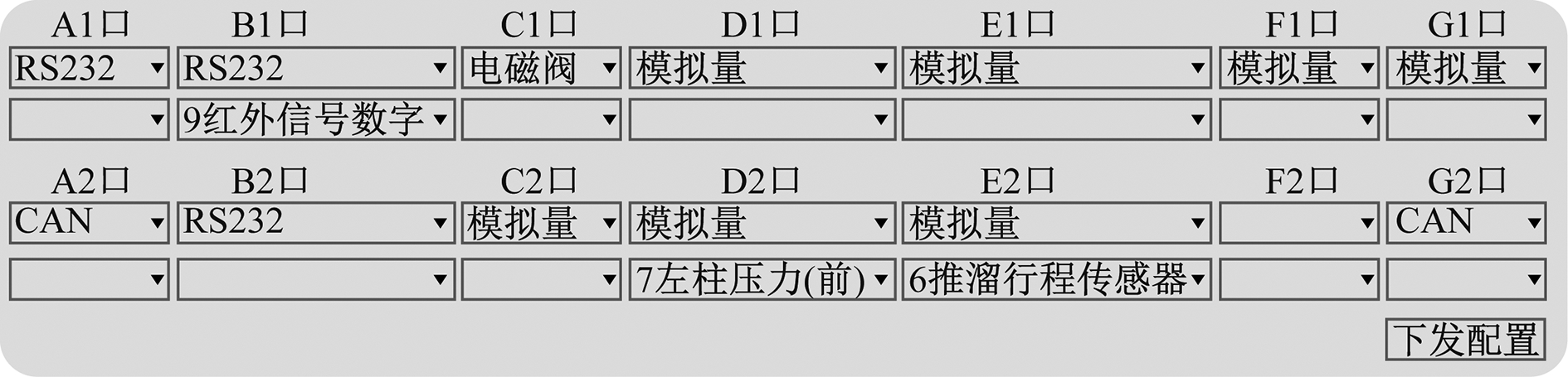 (2) 控制器端口功能配置:根据具体的应用项目配套信息,测试管理平台完成对检测装置复用端口的实际应用功能配置,控制器端口功能配置界面如图6所示。
