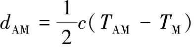 为定位分站到定位卡之间的真实距离,定位误差为ΔdAM,则有