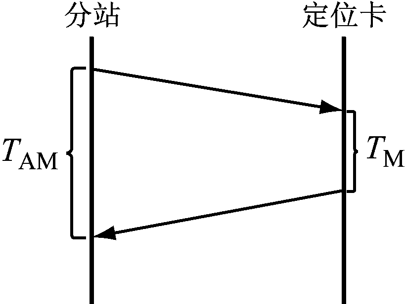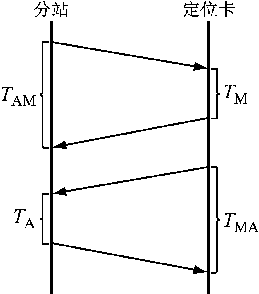 TWR定位方法是TOA定位方法的改进方法,通过定位分站与定位卡之间的双向信号传输实现测距,如图1所示。