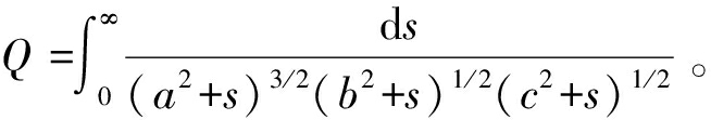 式中K为椭球体的无量纲特征,K=2/(abcQ),Q为中间参量,![]()